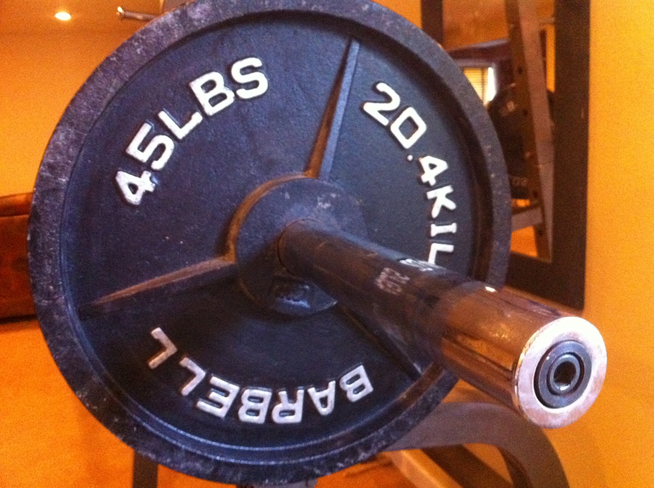 I lucked into a really good deal for my home setup. I found it on Craigslist and paid $250 for something which was about $800 new—375 pounds of Olympic weights and bar, really nice bench, and a half rack. And, the person delivered to my house and set it up in my living room!