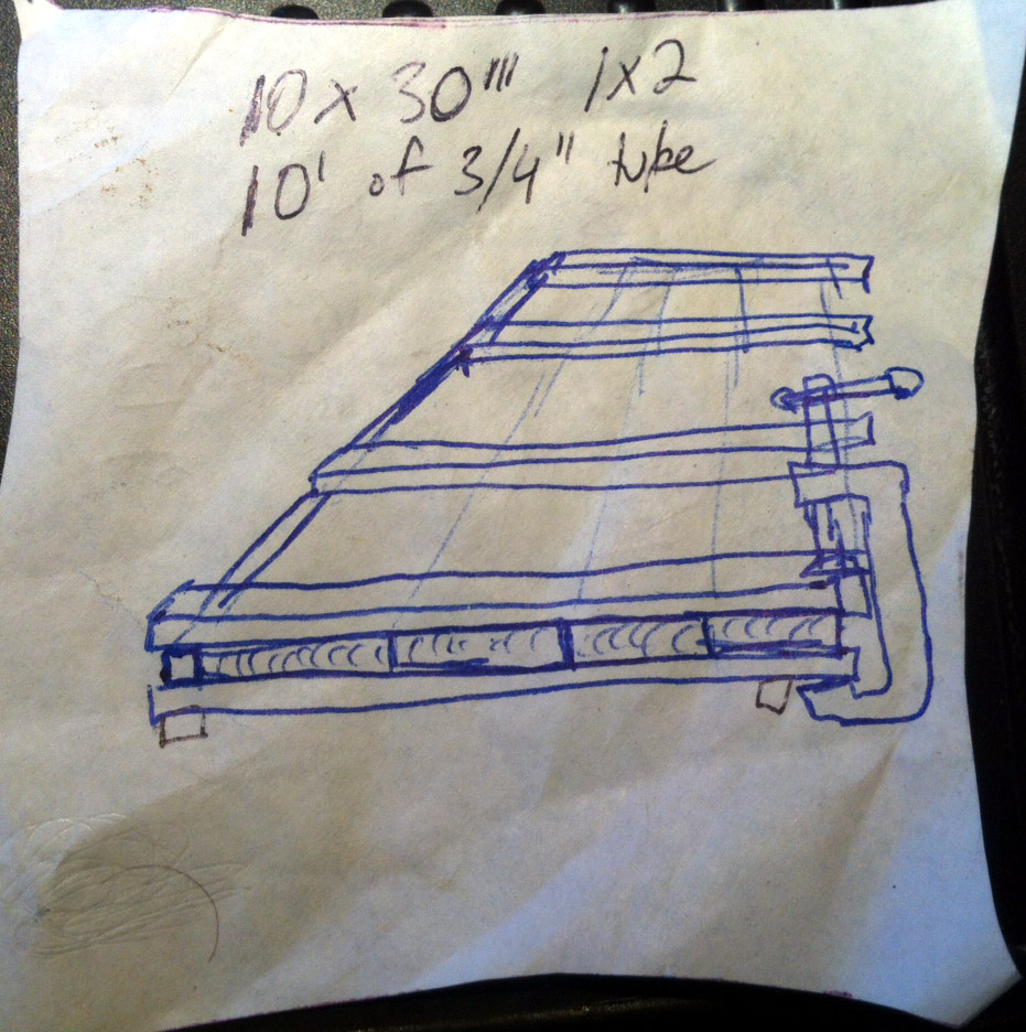 A few basic metal pieces can be found right in the hardware section of Home Depot and Lowe’s. But for serious projects, you’ll want to find a metal shop. Look up “welding” in your local business directory, and you’ll end up at a friendly old sheetmetal building in the industrial section of town where the guys have grease on their cheeks and awkwardly peck away on a beige 486 running Windows 95 to ring up your order. There you’ll probably find the best prices on steel, and will be available in lengths of up to 24 feet. I get my raw materials at “Mountain View Welding”, shown at left.