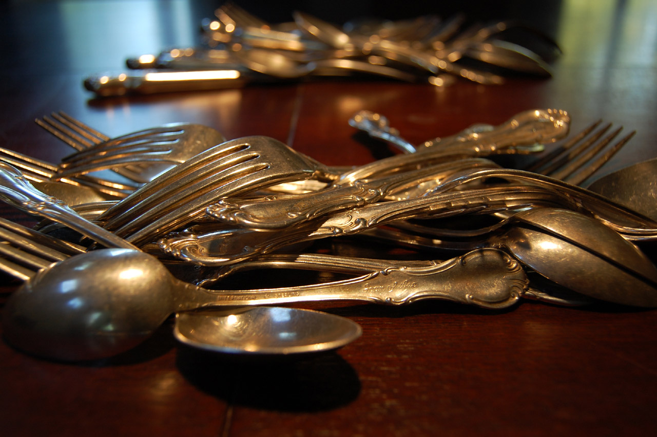 As a case-in-point, let’s take my dear Mum – the same Grandma Money Mustache who was featured in the Cost-Effective Renovations article. Many years ago, her own parents passed on, leaving various antique things in their estate. One of these was a complete set of sterling silver flatware. It was fancy (although impractical) stuff which we occasionally used for big holiday dinners when I was a kid. After each use, it would become oxidized and require meticulous polishing with special fluids.