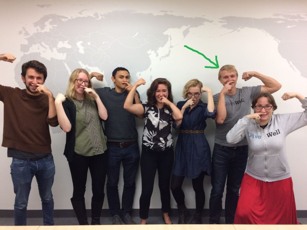 Christian Smith, along with colleagues at GiveWell in San Francisco, circa 2016
