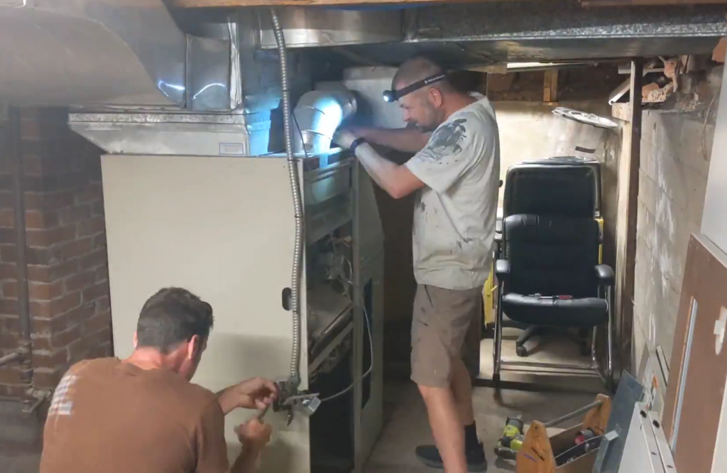 The size and shape of indoor portion (the air handler) of the new system have to be similar to your old furnace, or you need to have a plan for how to adapt the new one to blow into your old pipes. As you’ll see below, I chose to do the adapting.